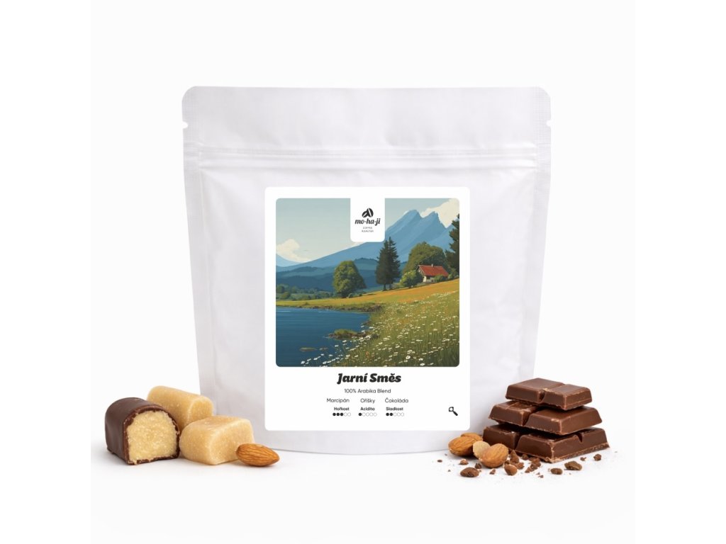 Voňavá a plná jarní pohody – naše Jarní směs přináší harmonii sladkých tónů marcipánu, jemných oříšků a čokolády. Chuť je plná a vyvážená, bez výrazné kyselosti, díky čemuž se káva příjemně pije po celý den.
