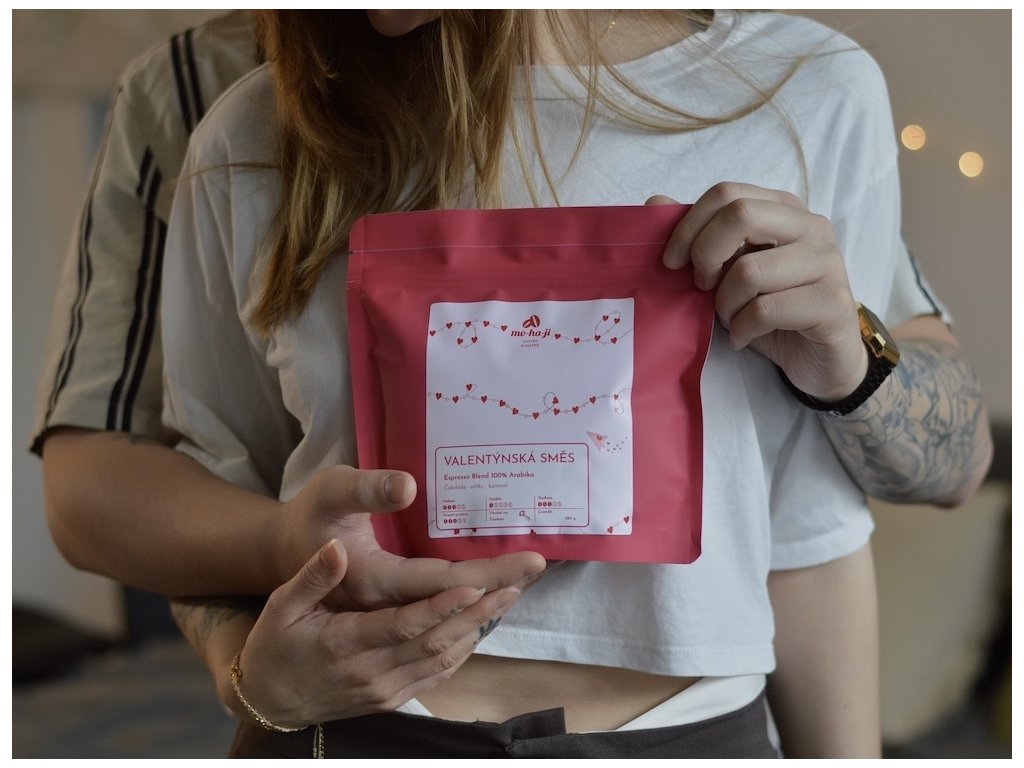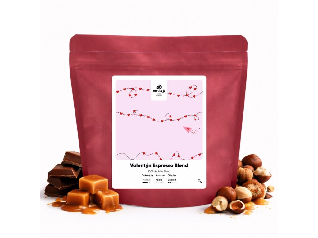 “S blížícím se Valentýnem jsem pro vás upražil speciální směs arabik, která je jako stvořená pro romantické chvíle. Kombinace kávy z Brazílie, Mexika a Tanzánie vás potěší bohatými tóny čokolády, jemnými oříšky a sladkým karamelovým závěrem. Upražil jsem ji na střední stupeň, abych docílil příjemného, vyváženého espressa. Tuto kávu bych doporučil na přípravu v espresso kávovarech. Hodí se jak na čisté espresso/lungo, tak třeba i na cappuccino.