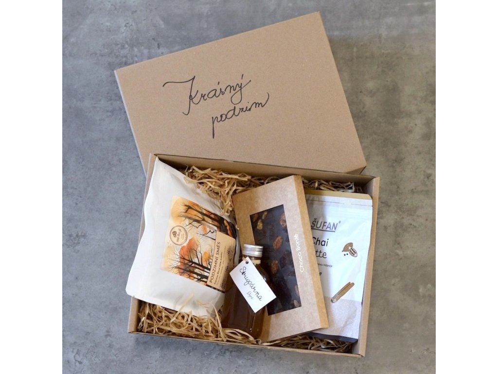 Náš box je ideální volbou pro sychravé podzimní dny - potěší vaše smysly a vykouzlí tu pravou hřejivou podzimní atmosféru, kterou si vychutnáte v pohodlí domova. Nadchne i zaryté odpůrce tohoto ročního období.