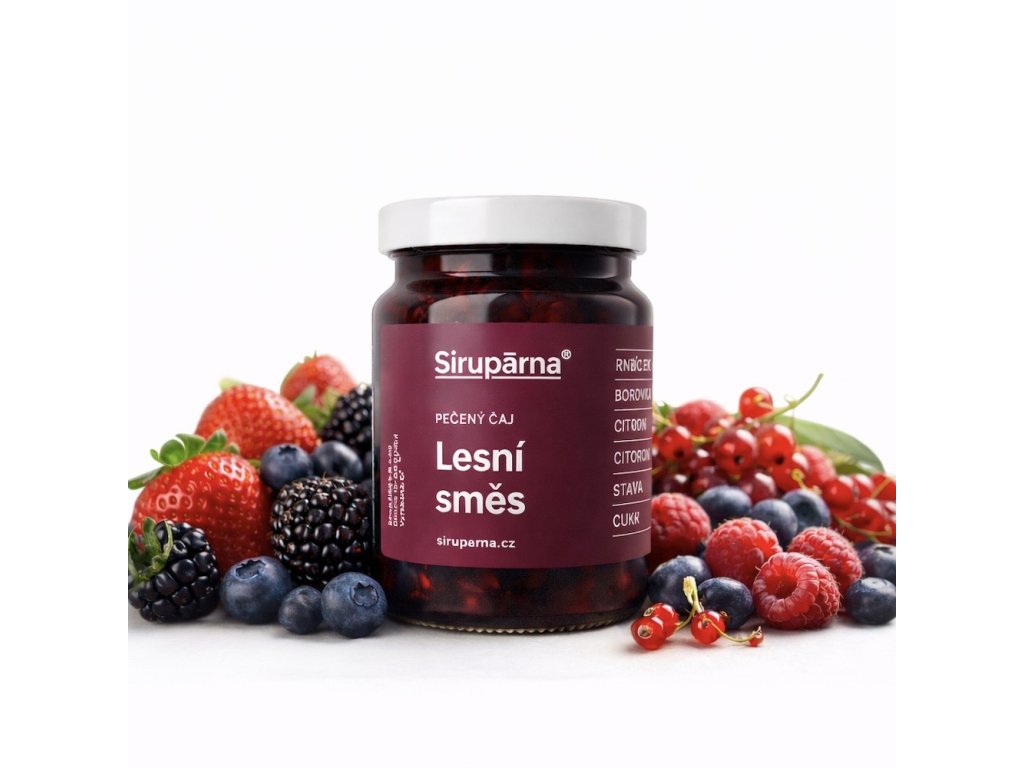 Lesní směs je klasika, na kterou se můžete spolehnout. Spojuje v sobě čtyři druhy lesního ovoce – rybíz, ostružiny, borůvky a maliny – které jsme pomalu zapekli s cukrem a trochou citronu do husté, tmavě rudé směsi. Díky vysokému obsahu ovoce (85 %) má plnou chuť a texturu blízkou marmeládě – proto ji využijete nejen jako čaj, ale i do sladkých jídel. Rybíz a maliny dodávají jemnou kyselinku a spoustu vitamínu C, borůvky a ostružiny zas obsahují cenné antioxidanty pro imunitu, pleť i cévy. Pečený čaj je tak nejen chutný, ale i přirozeně prospěšný.