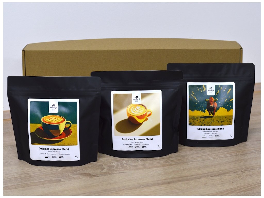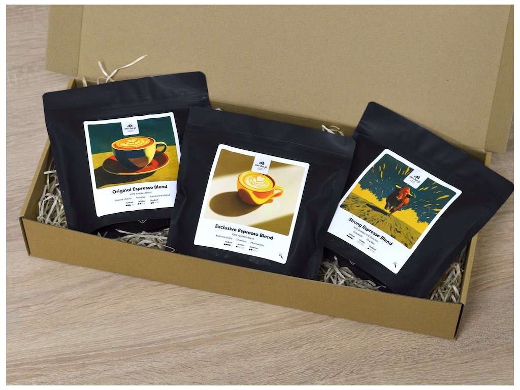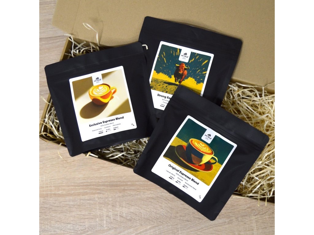 Degustačný set troch zrnkových kávových zmesí pre milovníkov espressa. Objavte rozmanité chute, ktoré vám doma vykúzlia espresso s plnou intenzívnou chuťou a bohatou cremou ako z kaviarne. Doprajte si jedinečný kávový zážitok.